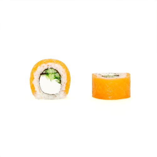 Классика японской кухни в идеальной пропорции: нежный рис, нори, королевская семга, кремовый сливочный сыр и хрустящий огурец — непревзойденное сочетание вкусов и текстур.