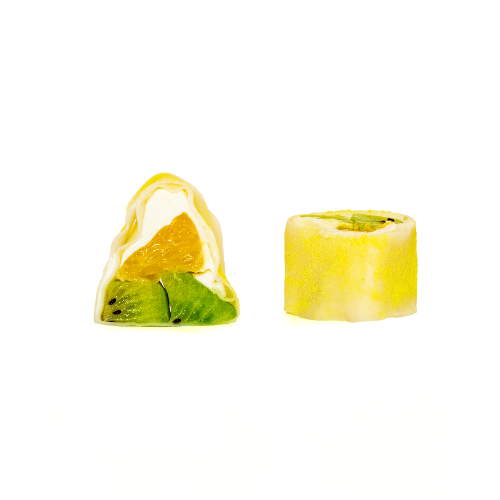 Тончайшая рисовая бумага, кремово-тающий сливочный сыр, солнечные дольки апельсина, свежайшие кружочки киви и экзотическая нотка соуса юдзу — музыка вкуса, созданная нашим шеф-поваром!