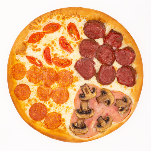 4 сезона — четыре времени года на одной пицце! Ветчина, шампиньоны, пепперони, копчёные колбаски, помидоры черри, моцарелла и сметанный соус на хрустящем тесте. Путешествие по сезонам в каждом кусочке!