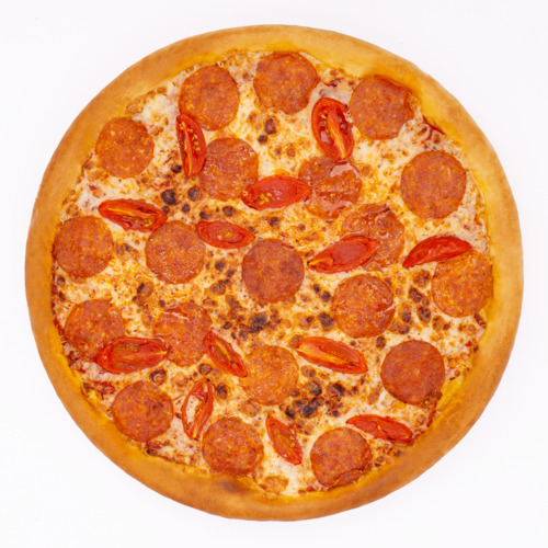 Свежесть и острота в одном кусочке: тонкое хрустящее тесто, сочная моцарелла, яркие помидорки черри, пряная пепперони и насыщенный томатный соус. Пицца, полная солнечного итальянского настроения!