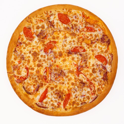 Тонкое тесто, покрытое гармоничным сочетанием томатного и нежного сметанного соусов, образует идеальную основу для растопленной моцареллы. Аппетитные ломтики бекона и копченых колбасок дарят насыщенный мясной вкус, а свежий болгарский перец добавляет яркую свежесть и хрустящую нотку. Пицца, которая соберёт за столом всю семью!